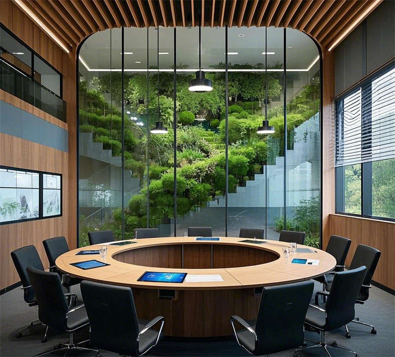 本設(shè)計充分考慮了辦公樓的不同功能區(qū),包括大堂、開放式辦公區(qū)、會議室、休息區(qū)、經(jīng)理辦公室、多功能廳、走廊和休閑露臺。每個區(qū)域有不同的設(shè)計重點,希望展示現(xiàn)代、科技感,同時兼顧舒適和環(huán)保,還要注意空間布局,比如開放式辦公區(qū)的協(xié)作性,會議室的隔音和多媒體設(shè)備,休息區(qū)的放松氛圍。