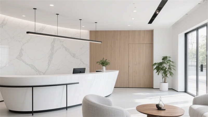細(xì)節(jié)處理上,墻面采用簡(jiǎn)潔的裝飾手法,避免過多繁復(fù)造型,地面材質(zhì)選擇耐磨且易清潔的種類,既符合辦公空間的實(shí)用需求,也保持了整體風(fēng)格的統(tǒng)一性。整體設(shè)計(jì)沒有多余的裝飾堆砌,而是通過對(duì)空間、色彩、材質(zhì)的精準(zhǔn)把控,打造出一個(gè)兼具美學(xué)感與實(shí)用性的辦公環(huán)境,讓辦公空間既簡(jiǎn)潔大氣,又能滿足日常辦公的各項(xiàng)功能需求。