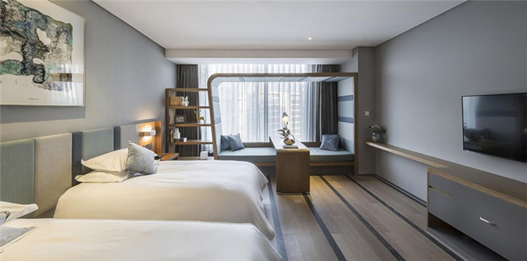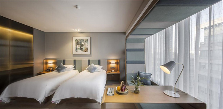 本酒店設計注重居室空間的布局與使用功能的完美結合,以簡潔而不簡單的造型、不繁重無過多的裝飾來裝點空間,強調形態(tài)與物件的單一性、抽象性,使整體環(huán)境更顯舒適大氣??臻g簡約的同時,色彩就要跳躍出來,通過大量高純度色彩的運用,靈活而又大膽,不單是對現(xiàn)代風格的遵循,也是個性的展示,從而打造出一個格調高雅、與眾不同的酒店空間。