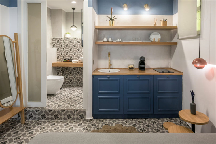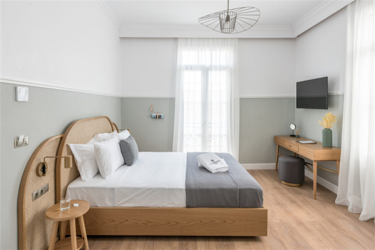 所有的地板都換成了天然橡木板和幾何水泥瓦。在整個(gè)客房中有一些小的現(xiàn)代細(xì)節(jié):如皮革墻壁掛鉤,極簡(jiǎn)主義的植物增添了現(xiàn)代感。