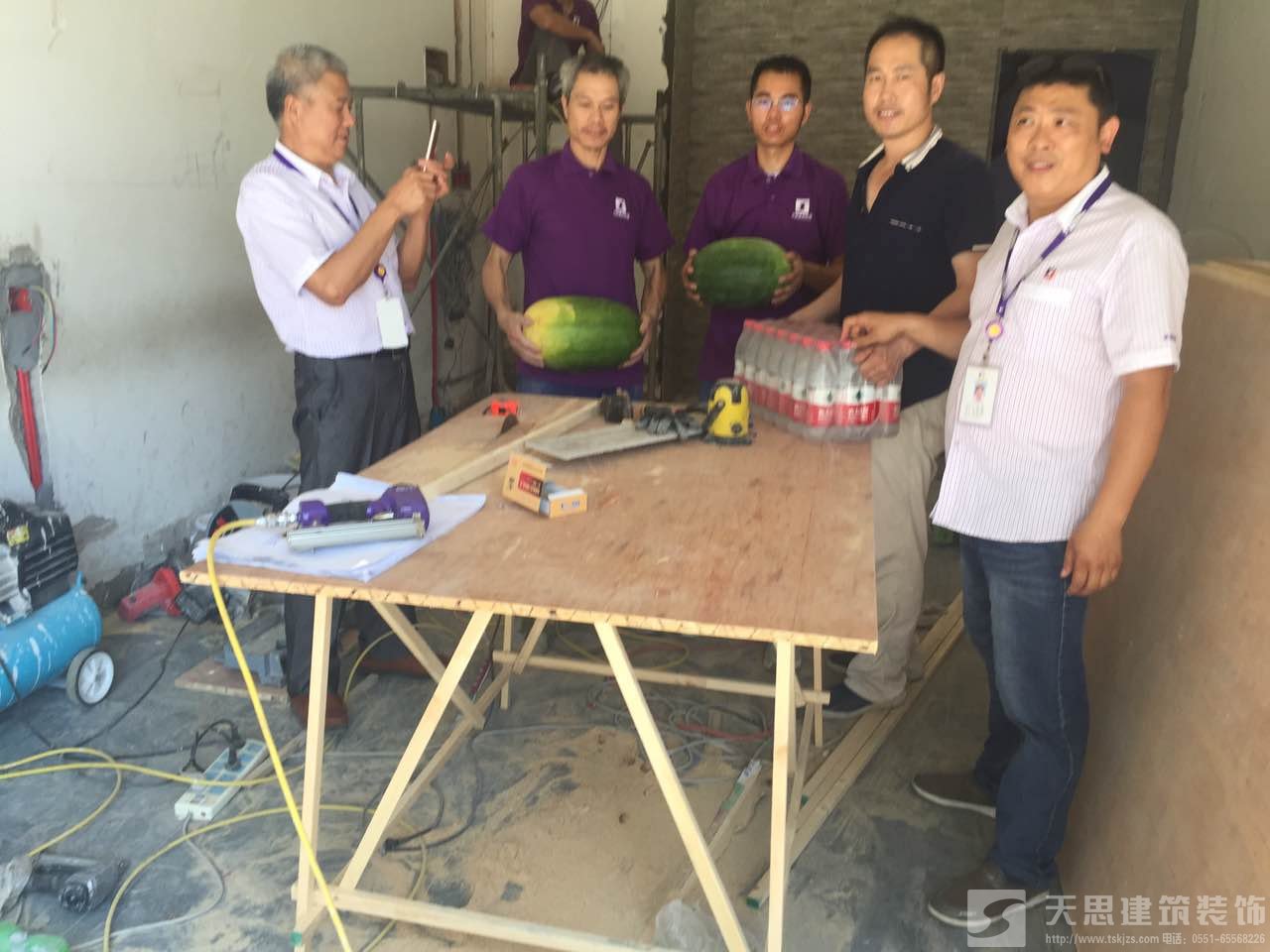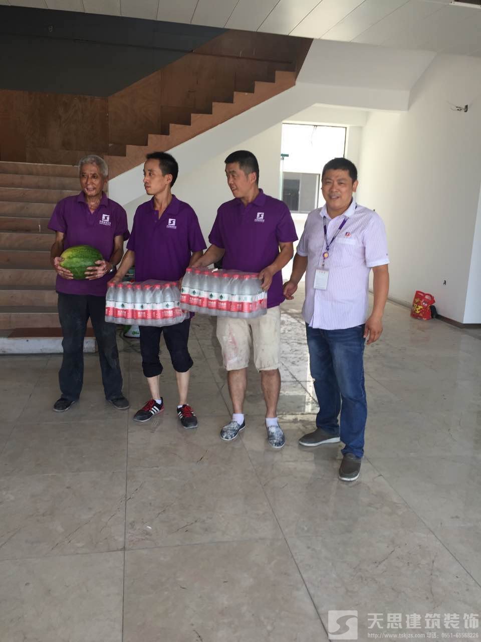天思建筑裝飾公司為工作在第一線的天思項目經(jīng)理及工人送一點點小小的慰問品,謝謝你們的付出,你們辛苦了。天思一行對大家為趕工期、保質(zhì)量所付出的辛苦表示衷心感謝,并囑咐工地負責人要愛護裝修工人的身體,在保質(zhì)量為首要前提下抓好安全施工。施工盡量利用早、晚時間,盡量避開高溫時段;若發(fā)現(xiàn)有身體不適,要及時注意休息,情況嚴重的要及時送醫(yī)。