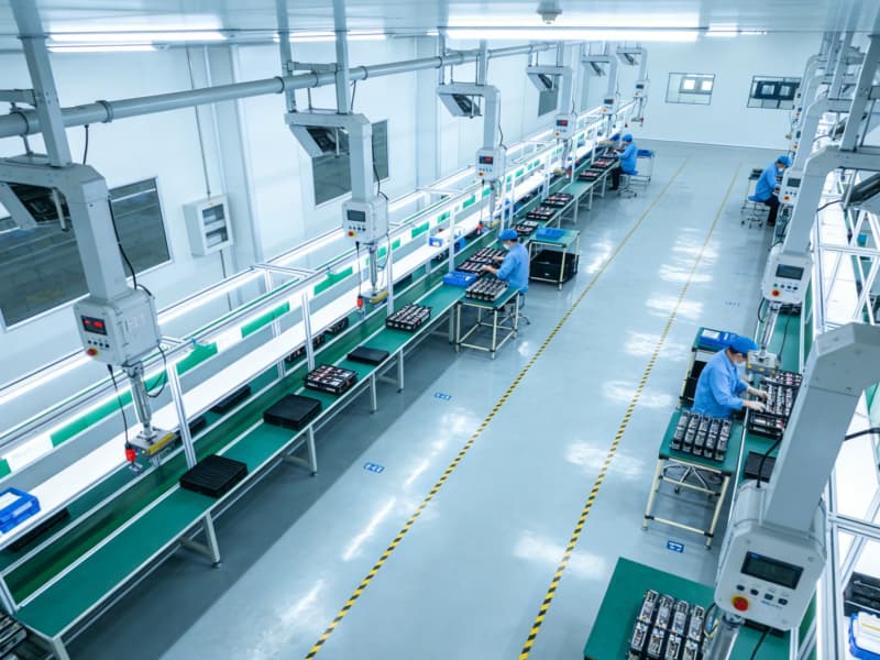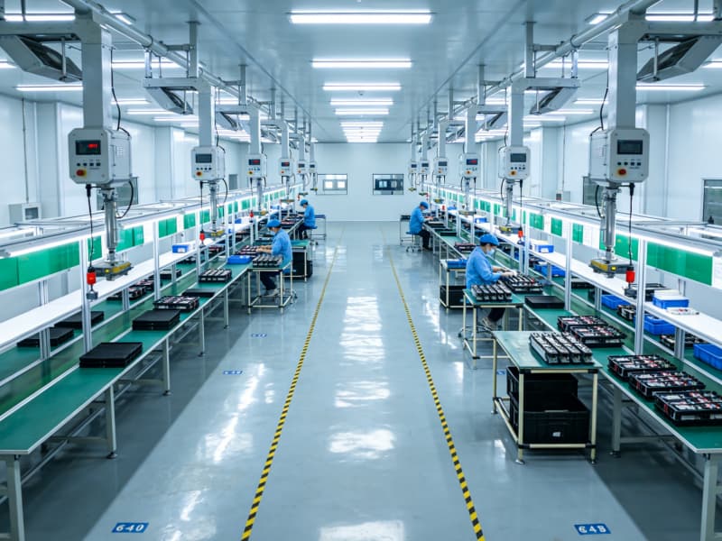 進(jìn)入內(nèi)部,生產(chǎn)區(qū)布局緊湊且合理,采用智能化的懸掛式生產(chǎn)設(shè)備,搭配可調(diào)節(jié)的無影燈光源,確保生產(chǎn)操作的精準(zhǔn)度。地面使用防靜電地坪,滿足電子設(shè)備生產(chǎn)需求。