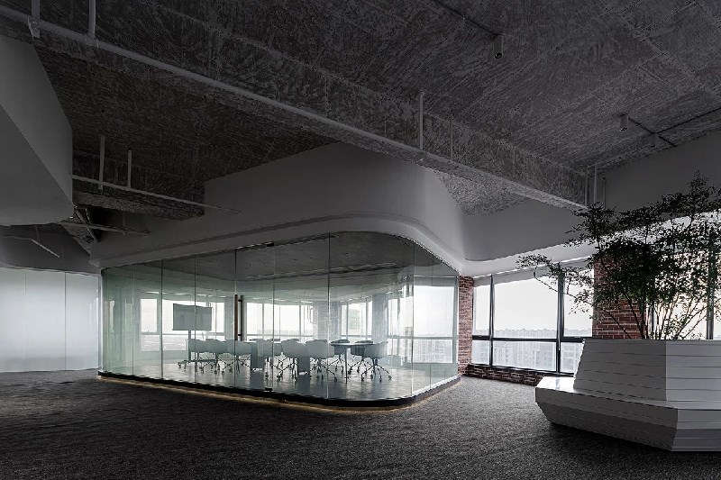 不同于以往辦公一味追求的對(duì)稱藝術(shù),經(jīng)由橫平豎直的線條勾勒,本案布局在硬朗的輪廓下規(guī)整有序,又與弧形彎道相輔相成,運(yùn)用圓角規(guī)避各處尖銳轉(zhuǎn)折,柔和視覺(jué)。