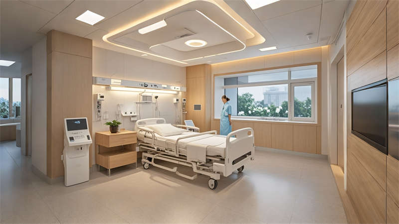 本8000㎡現(xiàn)代醫(yī)院設(shè)計以 ' 療愈型智能醫(yī)療 ' 為核心理念,采用模塊化空間布局。門診區(qū)運用淺藍(lán)灰主調(diào)配木紋元素,通過色彩心理學(xué)緩解患者焦慮;醫(yī)技區(qū)采用高反射率材料增強空間通透感。創(chuàng)新性整合智能導(dǎo)診、空氣質(zhì)量管理及醫(yī)療物流系統(tǒng),病房單元設(shè)置多模式照明系統(tǒng),兼顧醫(yī)療操作與患者休憩需求。環(huán)保抗菌材料全覆蓋,關(guān)鍵區(qū)域配置跌倒預(yù)警地膠系統(tǒng)。屋頂療愈花園突破傳統(tǒng)醫(yī)療空間限制,形成立體綠化體系。整體設(shè)計實現(xiàn)醫(yī)療功能、人文關(guān)懷與智能科技的有機融合,打造新一代智慧醫(yī)院樣板。