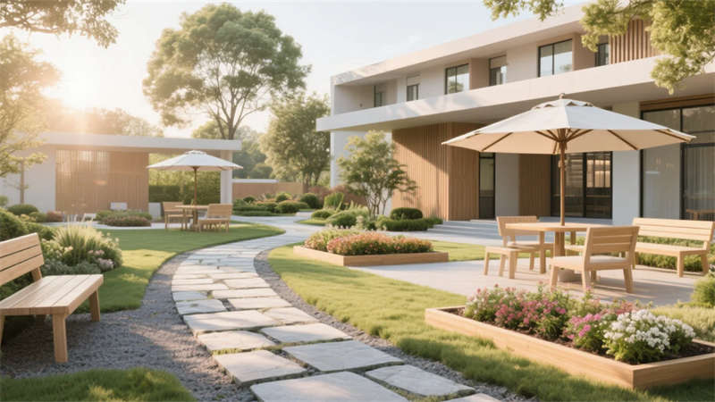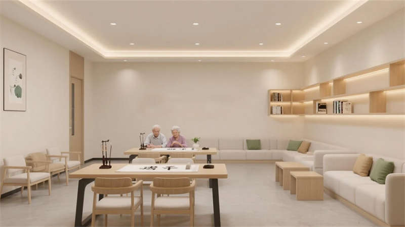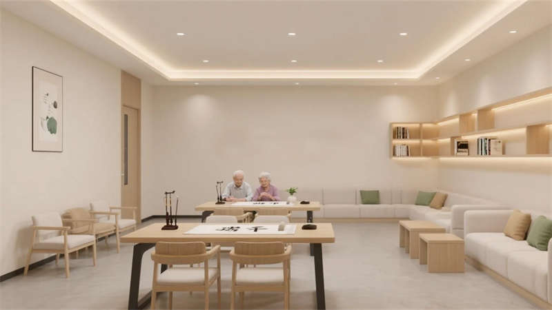 這套老年康養(yǎng)中心設(shè)計以現(xiàn)代簡約風(fēng)格為核心,營造一個溫馨、安全且充滿活力的生活空間。設(shè)計強調(diào)自然光與柔和色彩的融合,入口大廳以開闊布局和藝術(shù)元素傳遞家的溫暖,休息區(qū)則通過舒適沙發(fā)和綠植打造社交港灣。餐廳和活動室注重功能性,淺色調(diào)家具與靈活布局鼓勵日?;?,促進社區(qū)歸屬感。居住單元采用圓角細節(jié)和私密氛圍,確保舒適休憩。康復(fù)訓(xùn)練區(qū)融入防滑設(shè)計和自然光,支持健康活動。戶外庭院成為心靈綠洲,石板步道與花壇提供寧靜放松。多功能廳則適應(yīng)多樣需求,增強空間活力。整體設(shè)計以適老化理念貫穿,避免繁雜裝飾,突出簡約美學(xué)與人性關(guān)懷,讓每位長者感受到尊重與陪伴,在簡約中體驗生活的美好。