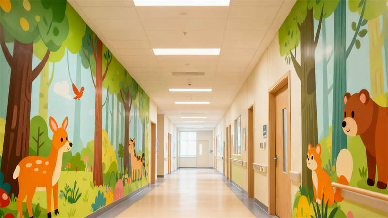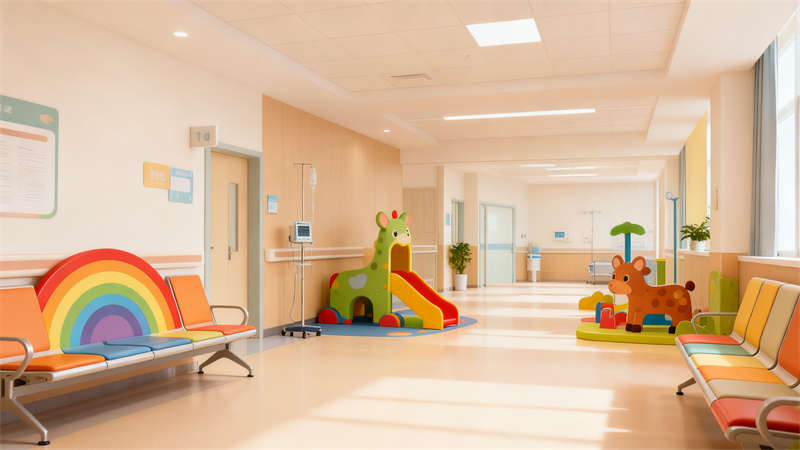 住院區(qū)域的裝修兼顧溫馨感與功能性,病房?jī)?nèi)布置溫馨的床品與收納空間,同時(shí)預(yù)留足夠的活動(dòng)區(qū)域,方便孩子在室內(nèi)活動(dòng)。走廊兩側(cè)墻面設(shè)置趣味互動(dòng)裝置與科普小知識(shí)展示區(qū),讓孩子在行走過(guò)程中能獲得樂趣與知識(shí)。游樂區(qū)裝修則以安全為首要原則,地面采用防滑材質(zhì),游樂設(shè)施經(jīng)過(guò)特殊處理,確保孩子在玩耍時(shí)的安全,同時(shí)通過(guò)豐富的色彩與造型,為孩子打造專屬的歡樂空間。整體裝修設(shè)計(jì)將醫(yī)療功能與兒童友好理念深度融合,為合肥這座城市的孩子們打造出一個(gè)充滿關(guān)愛與溫暖的就醫(yī)環(huán)境。?
