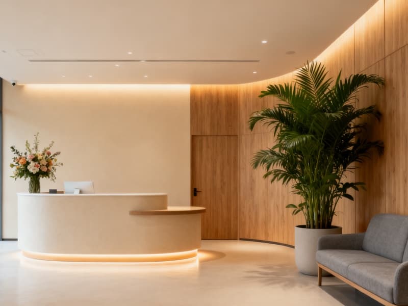 本設(shè)計(jì)以康養(yǎng)療愈為核心,聚焦休養(yǎng)人群的身心需求,打造兼具醫(yī)療專業(yè)性與生活溫度的4000平空間。整體風(fēng)格摒棄冰冷的工業(yè)感,以淺米、原木、柔粉等溫潤色調(diào)為基礎(chǔ),搭配柔和的光線與自然綠植,構(gòu)建舒適安心的環(huán)境氛圍。