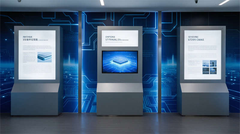 該半導(dǎo)體企業(yè)展廳以現(xiàn)代簡約風(fēng)格為核心,通過流暢空間布局與高科技元素,打造沉浸式科技體驗。設(shè)計突出半導(dǎo)體技術(shù)的抽象表達(dá),利用藍(lán)色與灰色調(diào)營造冷靜、專業(yè)的氛圍,同時融入玻璃、金屬材質(zhì)增強(qiáng)通透感。入口區(qū)以懸浮雕塑引導(dǎo)視線,產(chǎn)品展示區(qū)通過簡約玻璃柜和觸屏互動,生動呈現(xiàn)技術(shù)精髓;技術(shù)創(chuàng)新墻以動態(tài)圖文展現(xiàn)工藝演進(jìn),歷史廊道則以線性敘事喚起行業(yè)記憶?;訁^(qū)和未來展望區(qū)強(qiáng)調(diào)參與性,采用環(huán)形屏幕與全息投影,讓訪客直觀感受創(chuàng)新應(yīng)用。休息區(qū)與演講區(qū)注重人性化,簡約家具結(jié)合微光紋理,提供舒適交流空間。整體設(shè)計摒棄繁復(fù)裝飾,以干凈線條和光影變化強(qiáng)化空間流動性,不僅傳遞半導(dǎo)體領(lǐng)域的精密與前瞻性,更通過美學(xué)融合提升教育性和觀賞性。展廳作為科技展示平臺,旨在激發(fā)探索興趣,體現(xiàn)企業(yè)對創(chuàng)新文化的重視。