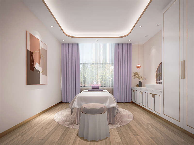 美容間,淡雅的色調(diào)與大面積留白,在視覺上體現(xiàn)出一種引導(dǎo)性和動感的體驗,頗有動靜怡然的空間氣氛。